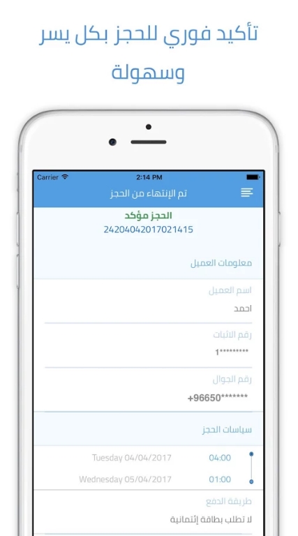 التطبيق مُقدم من الموقع الذي يحمل نفس الاسم. ويسهل التطبيق إمكانية إدارة حجوزاتك بسهولة ويسر باللغتين الإنجليزية والعربية.