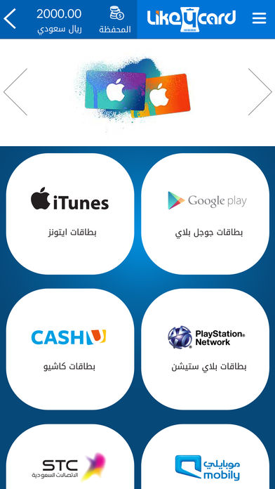 تطبيق لايك كارد لشراء بطاقات آيتونز وقوقل بلاي وبطاقات شحن اتصالات وماستر كارد افتراضية