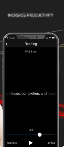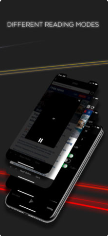 فيتيح لك التطبيق تسريع القراءة للسرعة المناسبة لك، كذلك سَيَمُدُّكَ سطرًا واحدًا من النص مع سماحه لعينك البقاء في مكان واحد.
