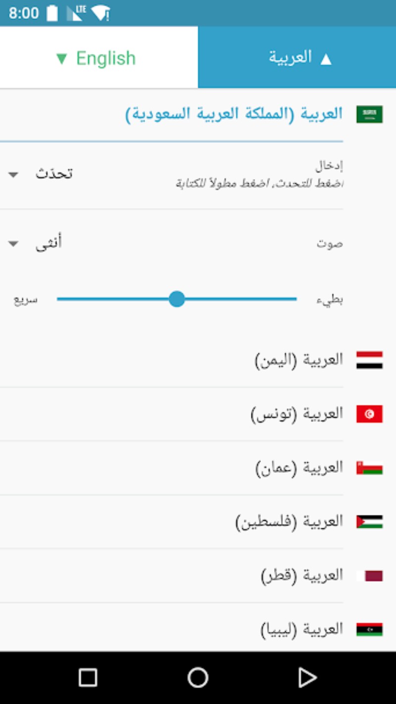 ولمستعملي اللغة العربية فالتطبيق يدعمها لكن لا يتوفر على اللهجات المستعملة عند العرب بعدد كبير.