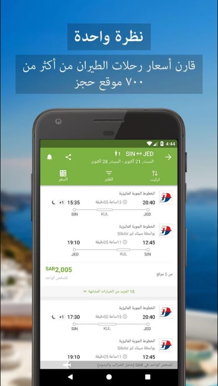 التطبيق يعد الأفضل من نوعه للمقارنة بين أسعار رحلات الطيران وحجوزات الفنادق عند السغر في مناطق الشرق الأوسط وآسيا والهند.